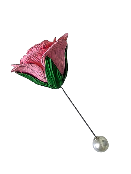 Această broșă elegantă, realizată manual cu migală și atenție la detalii, reprezintă un adevărat simbol al rafinamentului. Fiecare petală este modelată cu grijă, iar trandafirul prinde viață printr-o tehnică unică, oferindu-i un aspect natural și delicat. Broșa este prevăzută cu un ac pentru prindere și o închidere elegantă, completată de o perlă rafinată, care adaugă o notă sofisticată.